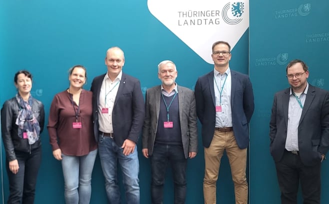 Zurück zum Landtagsbesuch: Nach dem gemeinsamen Mittagessen erhielten die Gäste eine persönliche Führung durch die beeindruckenden Gebäude des Landtags, bei der sie wertvolle Informationen zu den Funktionen und der Geschichte des Hauses erhielten. Besonders interessant war der Besuch der Sitzungssäle der Parteien, des Plenarsaals sowie der Räumlichkeiten des Präsidenten des Thüringer Landtags.