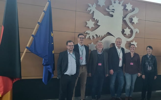 Ein Höhepunkt war der Zugang zu den "Katakomben" des Landtags, wo die Gäste den Erinnerungsort Thüringer Landtag besichtigen konnten. Eine eindrucksvolle Erfahrung, die einen tiefen Einblick in die Geschichte und Bedeutung dieses besonderen Ortes bot. Claudia Heber, die über ihre eigene Familiengeschichte sehr anschaulich erzählte, bereicherte die Führung mit persönlichen Anekdoten, die das historische Erbe lebendig machten. Im Anschluss durften die Besucher den Sitzungssaal des Thüringer Landtags betreten, wo sie spannende Informationen über die technische Ausstattung und die Regularien der Sitzungen erhielten.